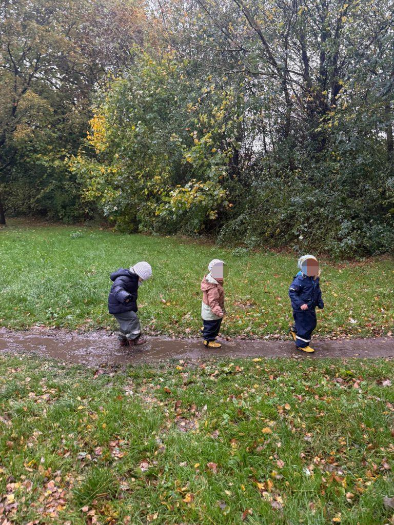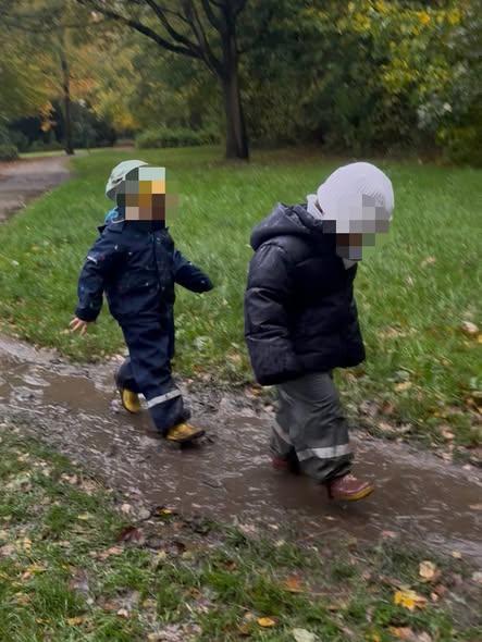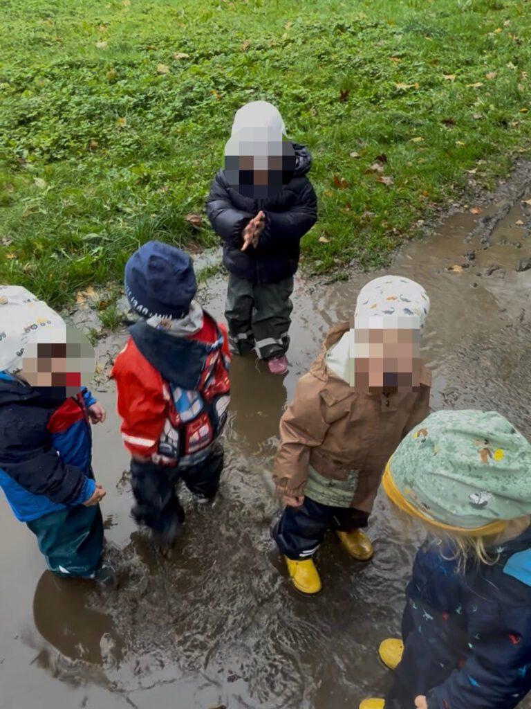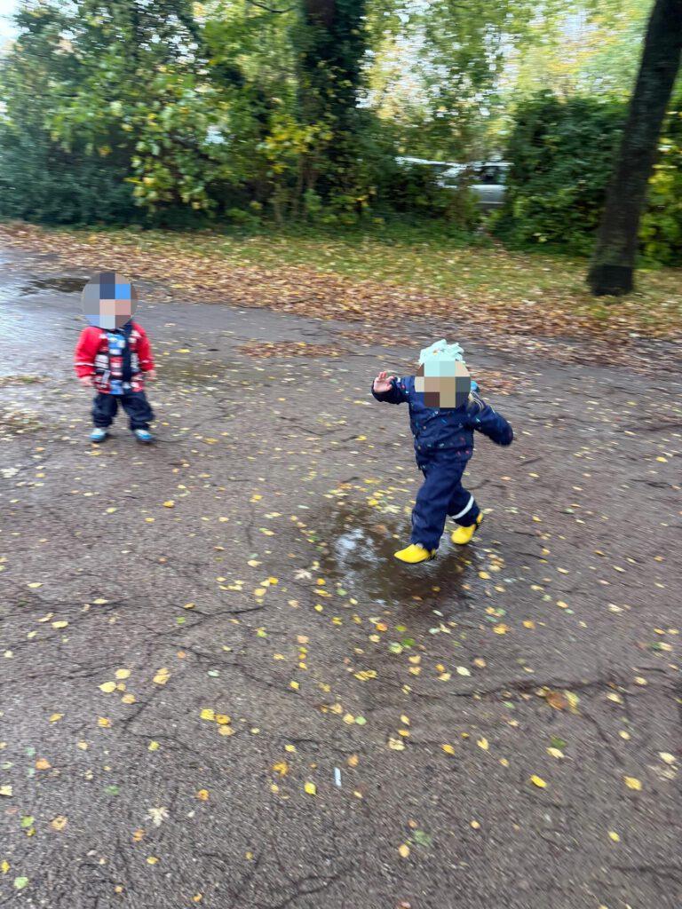 Heute sind wir mit Gummistiefeln und leuchtenden Augen durch die Pfützen gehüpft.