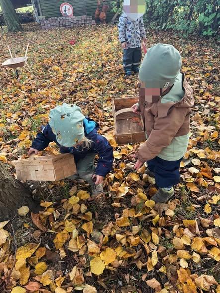 Unter unserem eigenen Kastanienbaum haben die Kinder mit großer Begeisterung Kastanien gesammelt – in kleinen Händen glänzten sie und waren zwischen all dem Laub gar nicht so einfach zu finden.