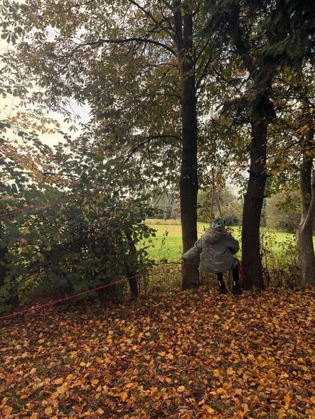 Zwischendurch wurde mit vereinten Kräften eine zweite Baumschaukel gebaut. Stück für Stück, Knoten für Knoten – und dann dieses glückliche Lachen, als die erste Fahrt durch die Herbstluft ging.