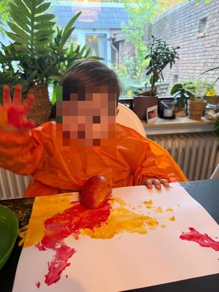Nebenbei konnten die Kinder spüren, wie sich der Apfel anfühlt, wie die Farbe sich verteilt und wie aus jedem Druck etwas Neues entsteht.